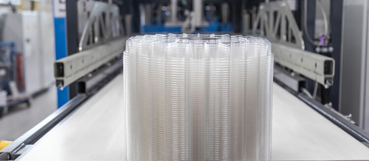 Wszystkie nasze tworzywa sztuczne zawierają 30% tworzyw sztucznych pochodzących z recyklingu. (PET zawiera 30% PCW, PP zawiera między 35% a 50% PIW). W trakcie procesu termoformowania natychmiast odzyskujemy nadwyżkę i poddajemy ją recyklingowi.